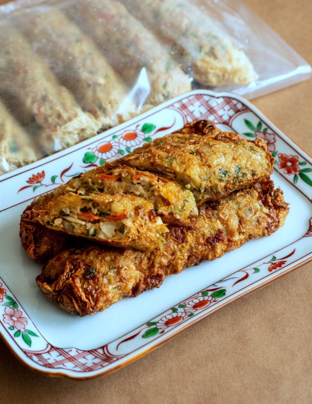 Enjoy a taste of tradition with our Teochew Ngoh Hiang, generously filled with yam, crunchy water chestnuts, fresh minced pork and shrimp. Fragrant and savoury with a comforting home-style bite, it’s perfect as a crowd-pleasing side, party platter favourite, or a hearty add-on to family meals.